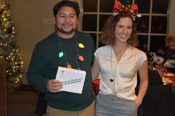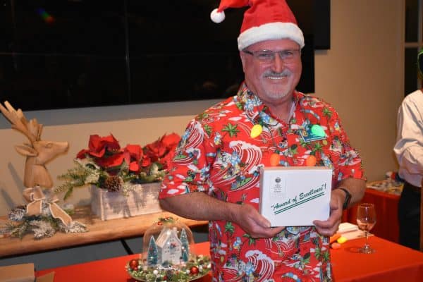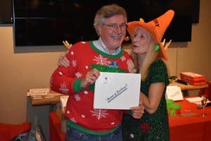 And last, but not least, we can’t forget the Hilarious Hats which ran the gamut from upside down Santa legs, faux pizzas, blinking light creations to reindeer ears. And the winning hat, a construction of an autocross start signal, which according to Wikipedia is also known as a “Christmas Tree”, went to…