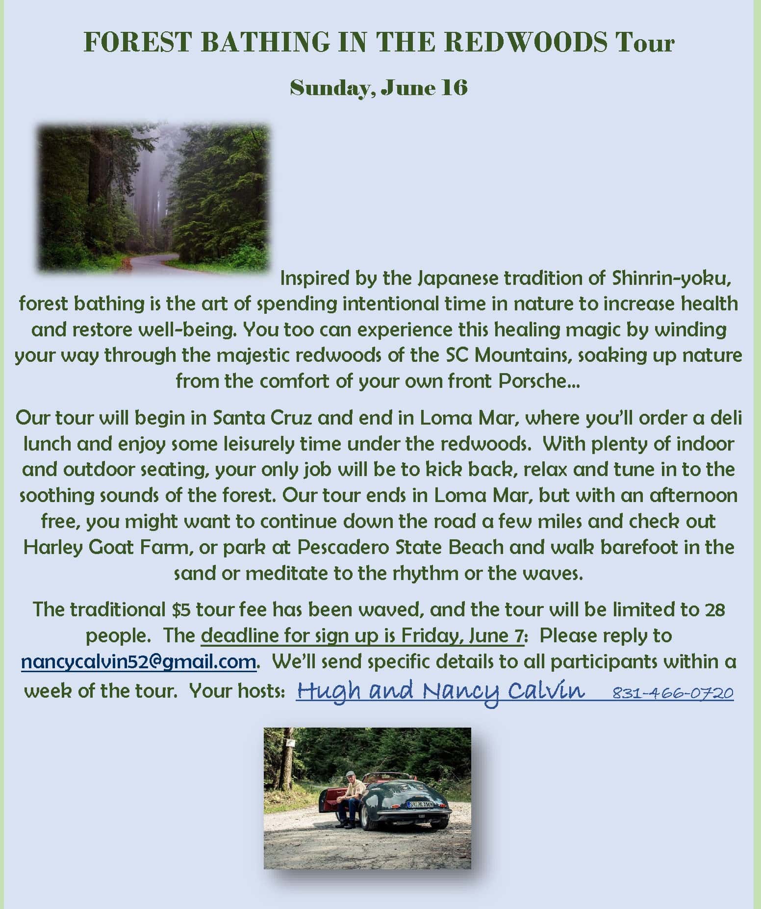 2024 Forest Bathing TourBy Loma Prieta / May 10, 2024 DEADLINE for sign up is Friday, June 7Click anywhere on the image to send Nancy Calvin an RSVP email!