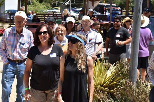 Although not much could compete with our conversations around the cars, our exit from the parking lot was finally motivated by our empty stomachs and we gravitated toward the picnic area. When we got there, it was immediately evident that some faithful LPR worker bees had been up at the crack of dawn, slogging cases of cold beverages, snacks, and games (nature hike, bean bag toss, bocce ball, volleyball, horseshoes, corn-hole toss and BINGO) that would make this a memorable day. The large PCA banner flying high above the registration table made it clear this was Porsche country! The banner, we guessed, was put there for any curious onlookers who missed Clue #1 – the more than 45 beautiful Porsches parked around us! We were welcomed by Jacqueline, Peter Ridgeway, Kris and Dana Ambrisko behind the registration table checking highly organized lists to be sure everyone had or made a name tag and got the right wrist band for their food selection.