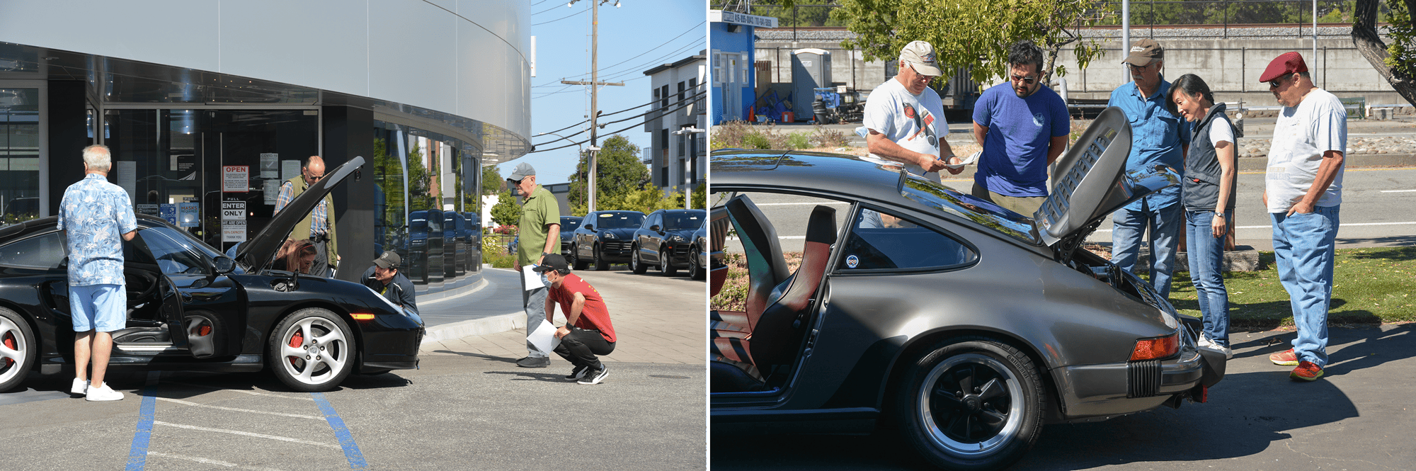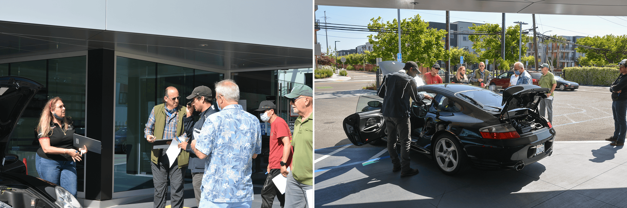 Roy Schauben and Simone Kopitzki have been working very hard this month conducting the hands on phase of the Zone Concours Judges School. With over 60 students registered for the 2 part training, 3 sessions were held in June with training on June 6th at Redwood City Porsche, June 13th at Hi Tech Automotive in San Rafael, and in the Sacramento area that was cosponsored by SVR on June 27th. The following photos are from the June 6th and 13th events: