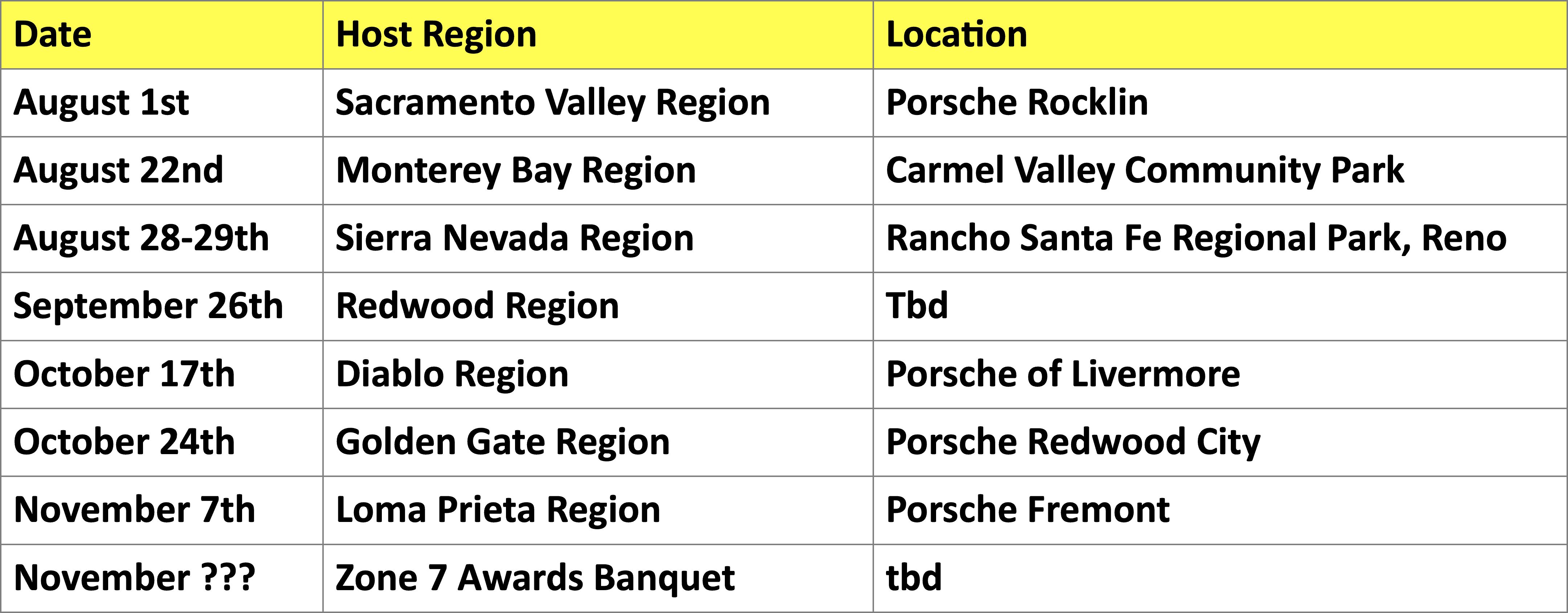 - PCA Fall Treffen at the American Club, Kohler, Wisconsin, October 13-17; treffen.pca.org. Registration opens August 4th.