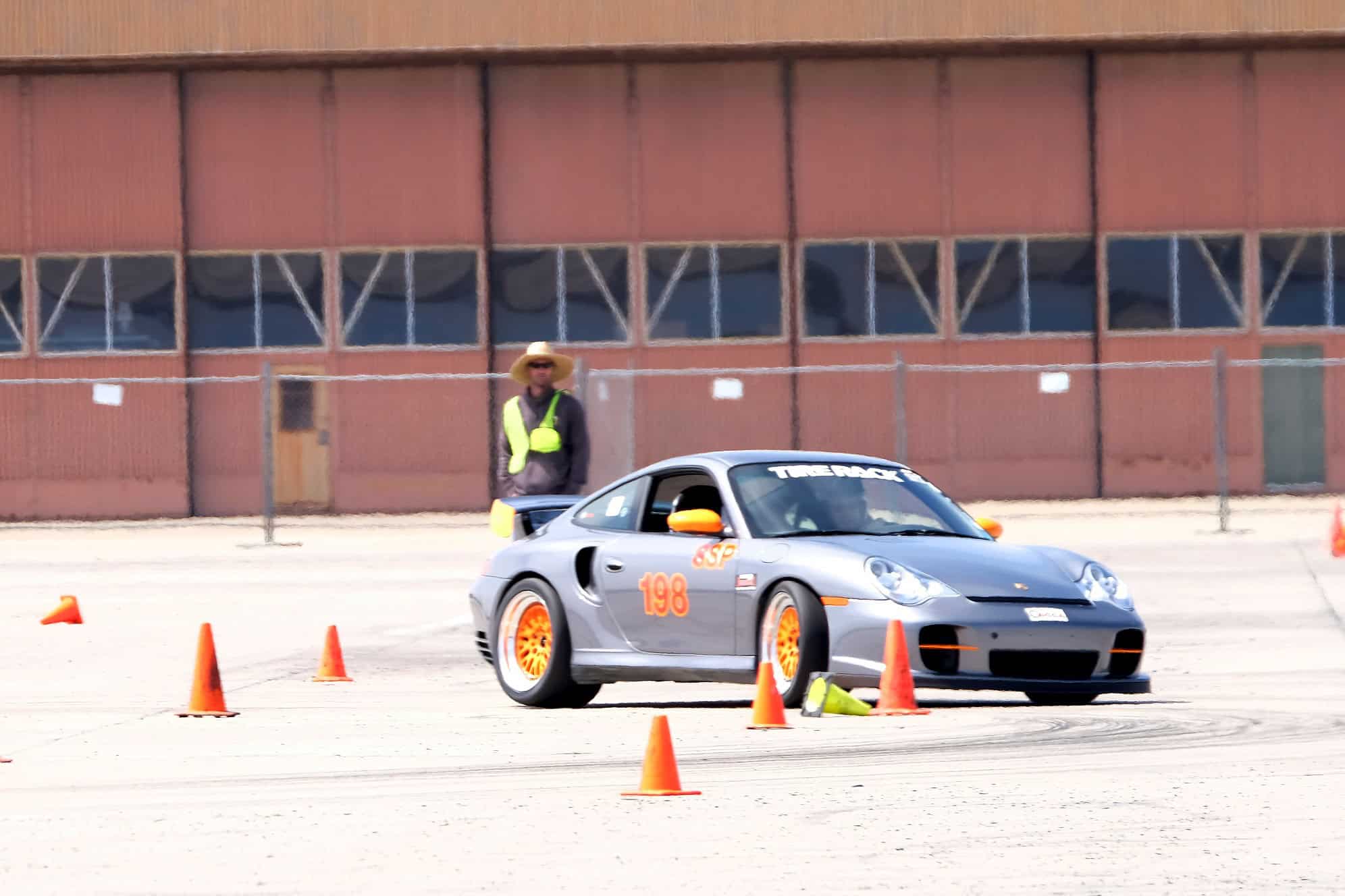 Old One Ninty-Eight looks to be cutting it close as she rounds the cones at LPR's Autocross #6 at Marina Airport.