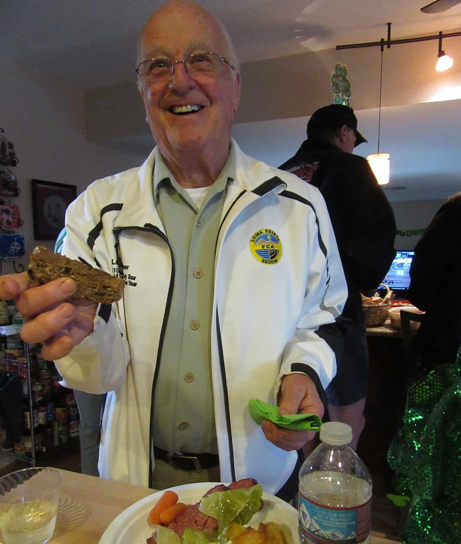 Soda Bread Schreiber! Les, well versed in the art of baking from years serving his country, took it upon himself to learn to bake soda bread for this occasion. "Here, have a taste!"