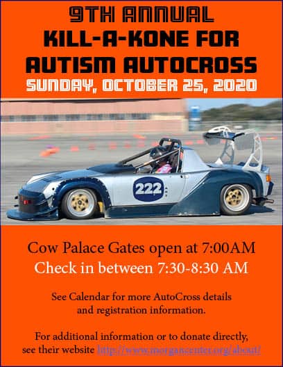 “Kill-A-Cone for Autism” Auto-Cross FundraiserWhat’s better than a day of autocross? Autocross with a cause! On Sunday October 25th,